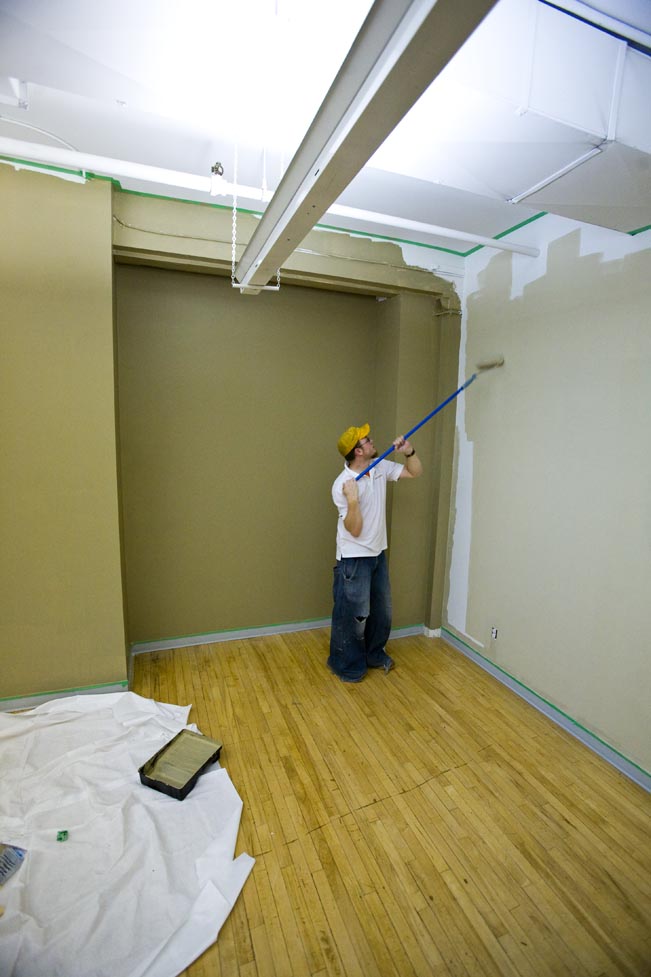 Welcome to painting day one! The first coat is pretty much up, I had the pleasure of wearing my crazy baggy painting pants (circa 1999) and had an awesome day. It’s so nice seeing it all come together and we can’t wait to see it done! Now to some pictures!